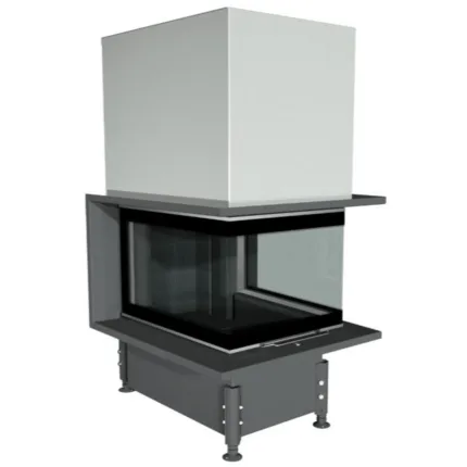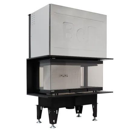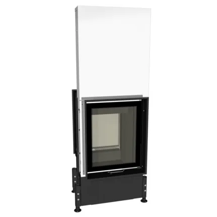 Et avansert luftgardinsystem, plassert over peisdøren, tilfører luft til innsatsen i den øvre delen, hvor etterforbrenning av gasser finner sted.