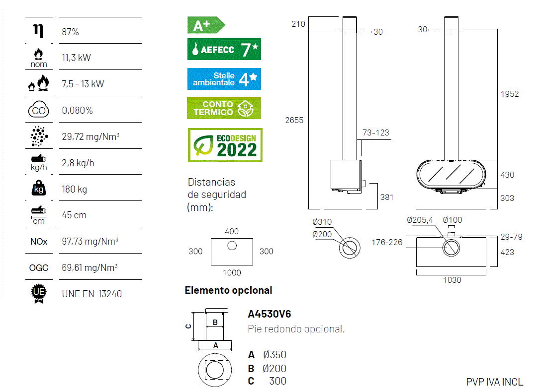 Denne moderne ovnen med elegant, oval form kombinerer stilrent design med høy funksjonalitet. Den avrundede fronten med panoramaglass gir godt innsyn til flammene og skaper en lun og eksklusiv atmosfære i rommet.